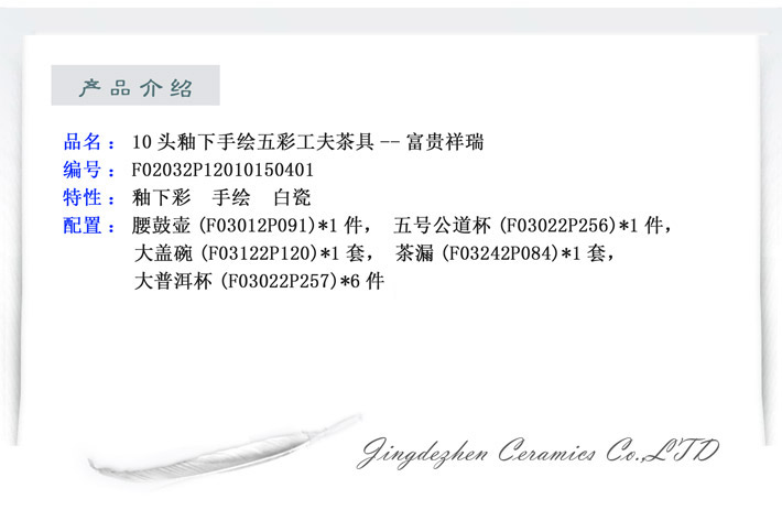 7頭釉下手繪五彩茶具--富貴祥瑞