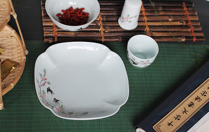 22頭青釉中餐具--燕子桃花