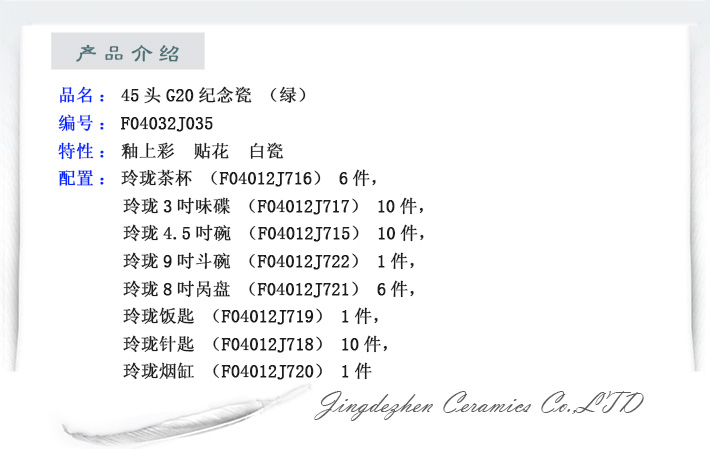 45頭G20紀(jì)念瓷(綠)